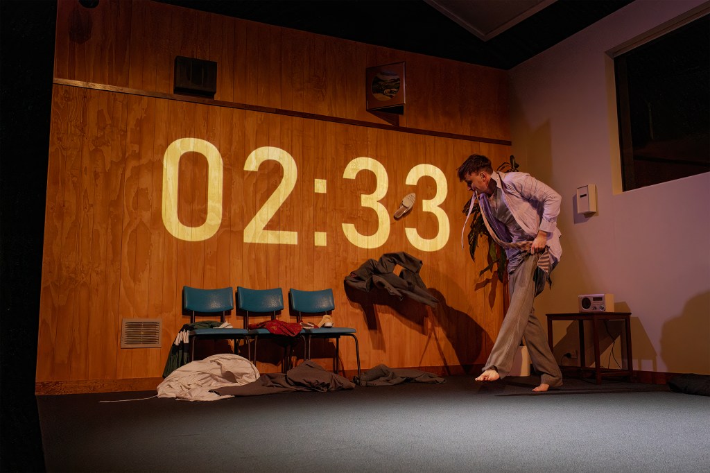The actors threw themselves into their roles. Phaedra Nicolaidis is especially heartbreaking in her portrayal as broken but hopeful lsa. Along with the brilliant acting, the bright spark in the drama was the technical creativity. Kate Beere designed the set, slicing it into two halves. The messy control room that looks lived in with chip packets and rubbish in sharp contrast to the sparse and utilitarian locked rooms. Audio visual effects created by Aron Murray changed the mood with clever cityscapes and forest imagery screened onto the walls. Arlington pushes sensory experience to extreme levels, especially through sound (via composer Steve Toulmin).