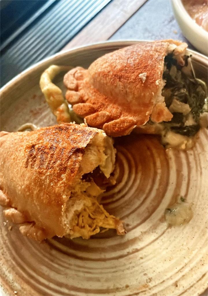 We focused on the small bites and there are a few must-orders. The deliciously salty Spanish white anchovies, served on crisp chips and topped with roasted peppers. And for a fresh dish bursting with flavour, you can’t go past the white fish crudo, covered with harissa aioli, native finger lime dressing. Resisting empanadas is futile for me and we ordered two of the three options. The beef, plus with the vegetarian option spinach and cheese. Happily, they are the big size, so great for sharing and come with a side of chillies.