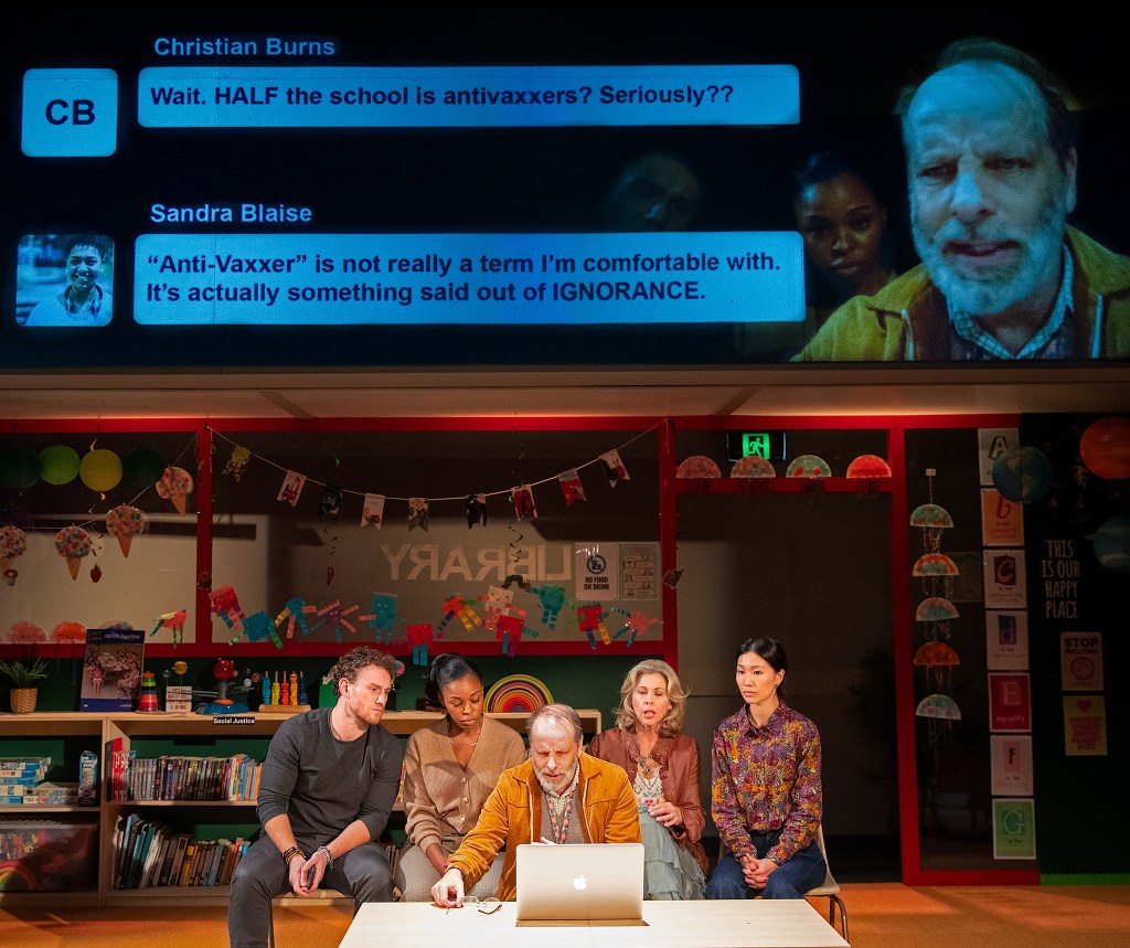 The performance opens with a group of earnest adults deliberating over a school admissions form — specifically, whether another identity box should be added to its already exhaustive list. It’s 2018, and the executive committee of Eureka Day, a private progressive primary school in Berkeley, California, tiptoe through every decision with excessive care. Words are chosen with precision — “with your permission” is routinely dropped in — and divergence is met with a chirpy “we welcome your unique perspective.” With a wave of jazz hands, consensus is king, and nothing moves without it.