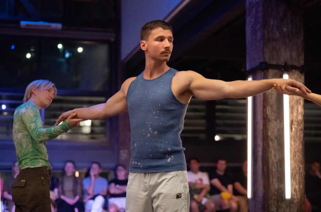 This is a raw production contemporary production, with no fixed narrative. The abstract work recognises Liedtke’s creative process and techniques. Movements dissect the body with mechanical precision — breaking down muscular shifts, testing endurance and embracing discomfort. The intensity feels cathartic, as the dancers share their memories of performing for her.